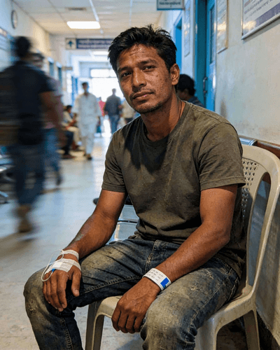 Ramesh collapsed during a long shift in Delhi and was rushed to a government hospital with severe dehydration and suspected typhoid. His roommates had no savings for tests and medicines, and the employer refused an advance. SewaDost arranged immediate support for diagnostics, essential medicines, and food for his attendants.